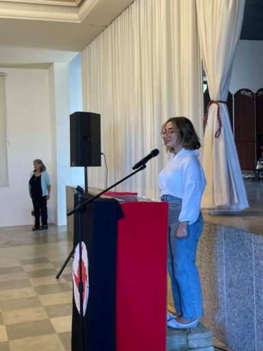 وقد ألقت الرفيقة انجل زيدان كلمة من وحي المناسبة شكرت فيها حضور الجميع ومساهمتهم حيث يعود ريع هذا النشاط لدعم الطلاب في رويسة البلوط.كما جرى توزيع جوائز للفائزين بسحب التومبولا.