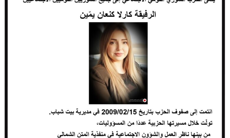 الحزب ينعى الرفيقة كارلا يمّين