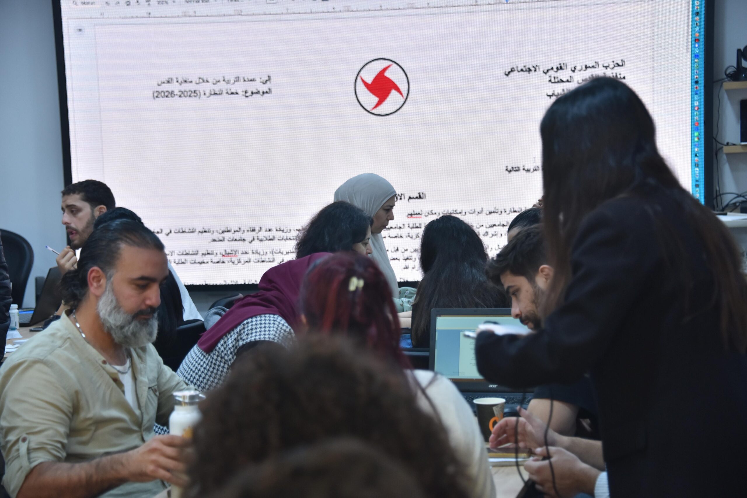 وتخللت الورشة محاضرات وتمارين تُعنى بتطبيق مساقات الجيل الجديد والطلبة الجامعيين وتحضير برنامج سنوي للنشاطات الحزبية، وإدارة وتنفيذ الخطة على ارض الواقع، وتحضير تقارير عن الوضع التربوي في المتحد ورفعها.