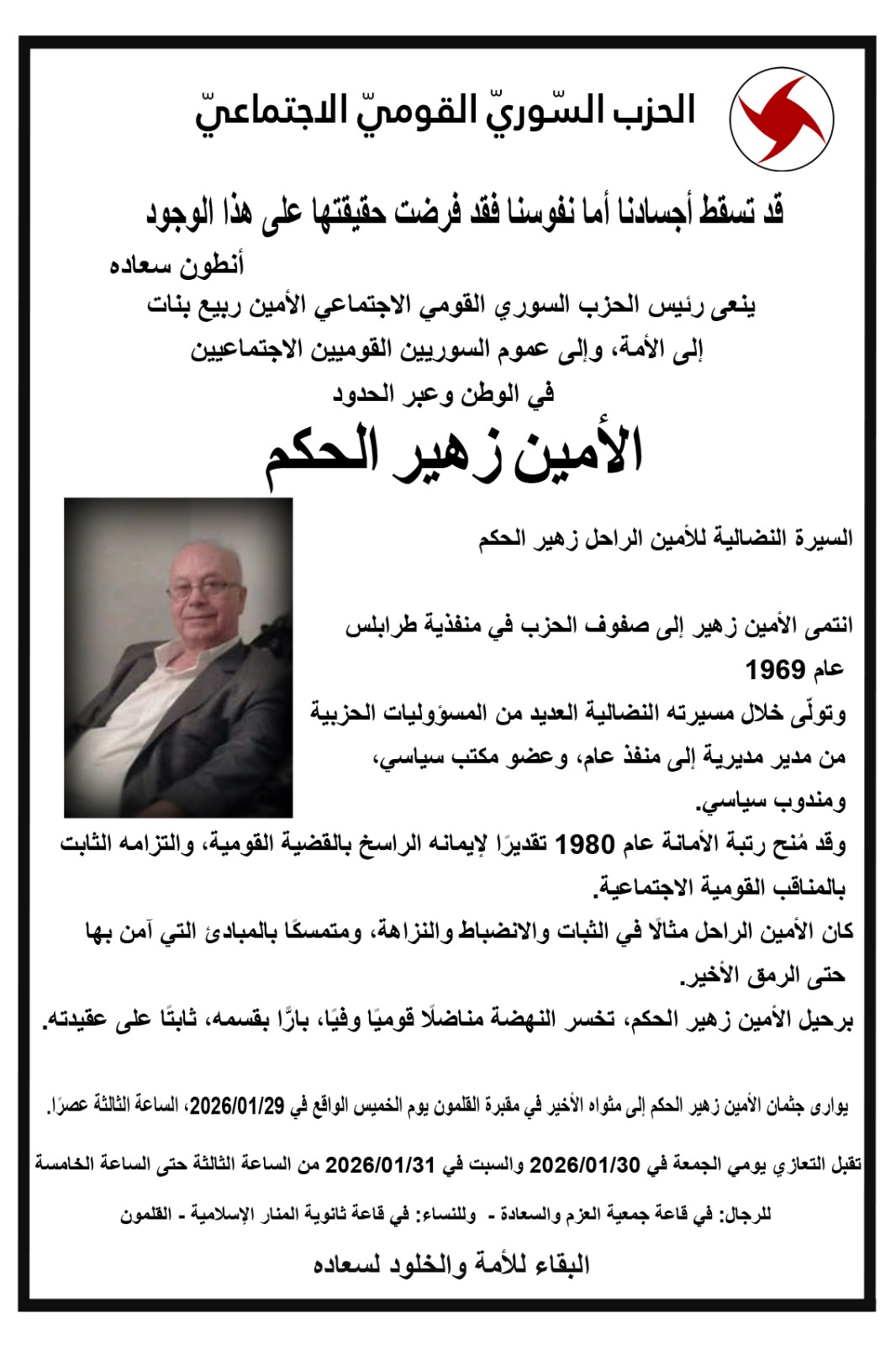 الحزب ينعى الأمين زهير الحكم 27/01/2026 1٬097 أقل من دقيقة 27/01/2026 1٬097 أقل من دقيقة اظهر المزيد فيسبوك X ماسنجر ماسنجر واتساب تيلقرام ڤايبر لاين مشاركة عبر البريد طباعة